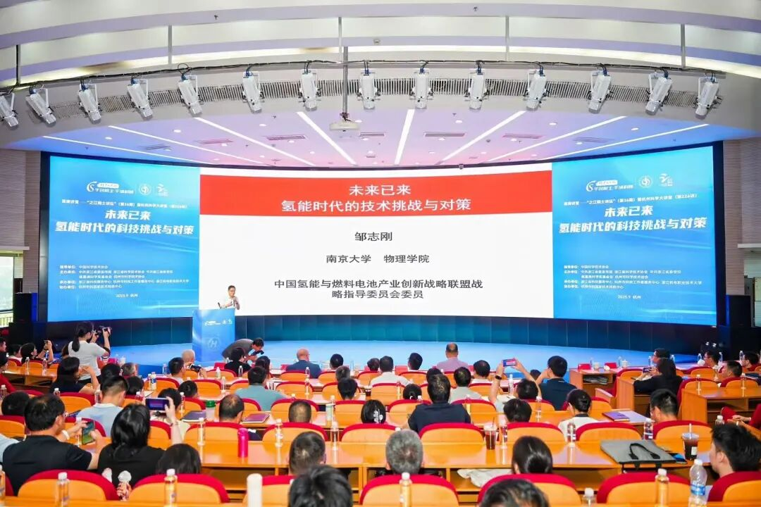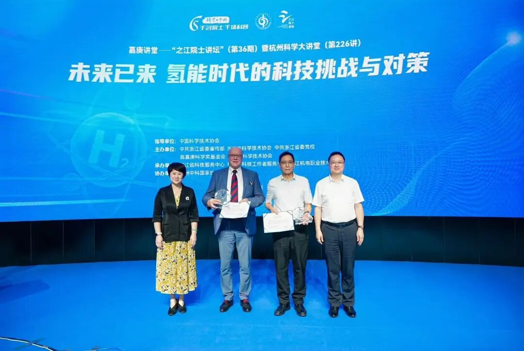 9月16日下午,在浙江机电职业技术大学,嘉庚讲堂—之江院士讲坛第36期暨杭州科学大讲堂第226讲“未来已来——氢能时代的科技挑战与对策”联合启幕。中国科学院院士、南京大学教授、中国功能材料学会理事长邹志刚与德国国家科学技术研究院院士、牛津大学中国中心(亚洲和中东研究学院)教授Peter Sachsenmeier同台论道,围绕“氢能时代的科技挑战与对策”展开深度探讨,为浙江乃至全国的氢能产业发展提供前沿思考和创新思路。