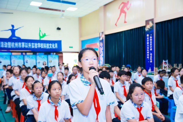 上城区教育局总督学陈韵也在致辞中向毛明院士及促成活动的省市区科协同仁致以敬意,她介绍,上城区始终坚持以生为本,把好课程、阵地、活动、评价“四道关”,统筹资源、一体推进新时代科学教育。本次毛明院士与上城学校的跨领域对话,正是上城“美好教育”的生动缩影。接下来,区域还将进一步聚焦“科学家精神”培育工程,通过强实践、聚资源、建队伍,持续推进新时代科学教育。