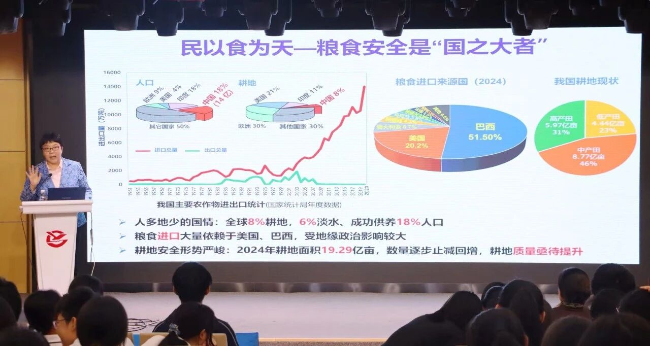 她以“SUPERMAN”基因的发现为例,深入浅出地讲解了其科学原理及背后的探索历程。此外,曹院士重点介绍了其团队在盐碱地高效育种方面的突破性成果——通过草种改良与盐碱地资源化利用,为我国粮食安全提供坚实的科技支撑。这一前沿领域的分享,也为有志于生命科学研究的同学打开了新的大门。