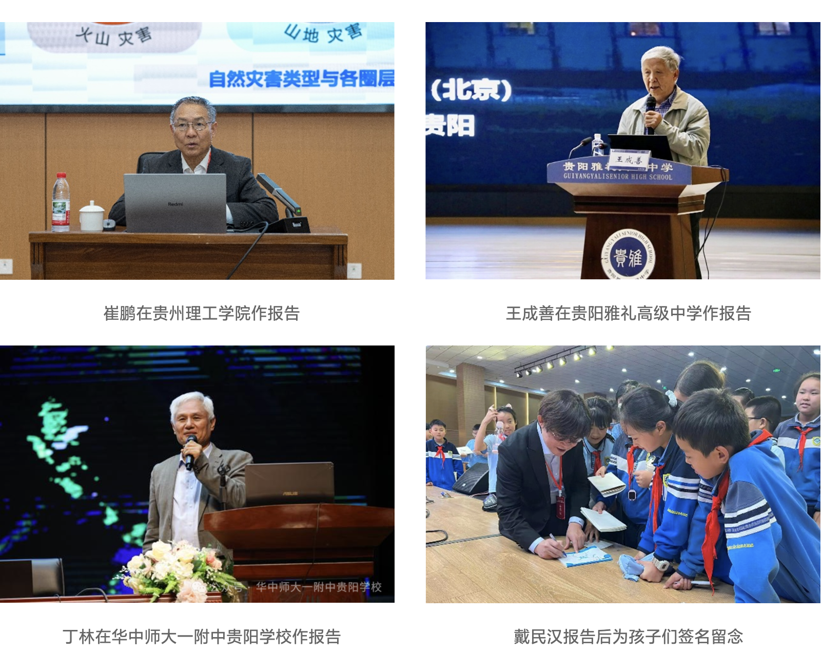 为弘扬科学精神,传播科学知识,王成善、崔鹏、戴民汉、丁林、徐义刚等院士分别来到贵州理工学院、贵阳雅礼高级中学、华中师大一附中贵阳学校、贵阳市清华中学、铜仁市玉屏侗族自治县大屯小学等学校开展“科学与中国”之“嘉庚讲堂”活动,共3000余名师生聆听院士讲座。院士们的报告深入浅出地介绍了地下科学钻探、青藏高原隆升的影响、海洋科学等内容,展示了不同领域的最新科研成果,激发了学生们的学习兴趣,引发了师生们的广泛关注和深入思考。
