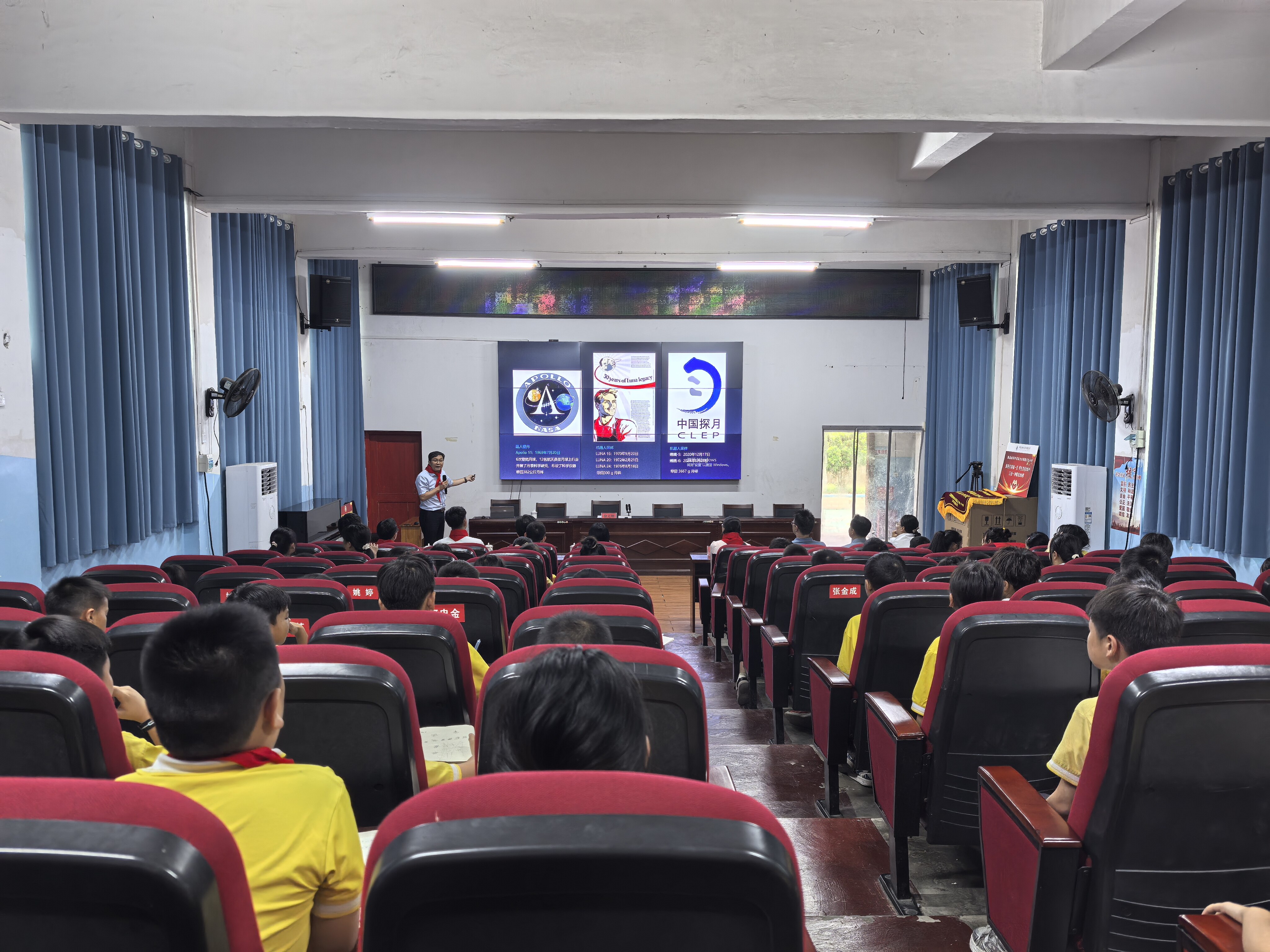 捐赠仪式后,徐义刚院士以《地月对话——从“阿波罗”到“嫦娥”探月》为题,带来一场沉浸式科普讲座。他结合历史影像与工程案例,从美国阿波罗登月的探索历程,讲到中国嫦娥探月工程的自主创新与辉煌成就,用生动通俗的语言拆解宇宙奥秘,激发孩子们对科学探索的兴趣。